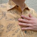 新作手作り半袖和柄シャツ(鳥獣戯画)からし色