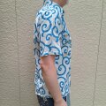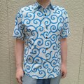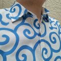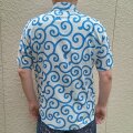 半袖和柄シャツ(大唐草模様)白×コバルト