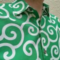 新作手作り半袖和柄シャツ(大唐草模様)リーフ×白