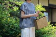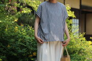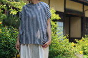 新潟の亀田縞で仕立てた、さらりと涼しい裾タックブラウス。