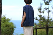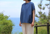 新潟の亀田縞で仕立てた、さらりと涼しい裾タックブラウス。
