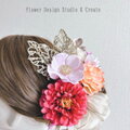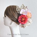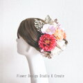 成人式・結婚式に♡ピンクのダリアとオレンジの薔薇のヘッドドレス 前撮り 成人式 入学式 卒業式 袴 着物 振袖 髪飾り