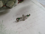 ガラスの装飾ブローチは縦横どちらにの向きでもつけられます。