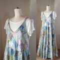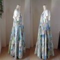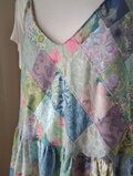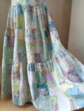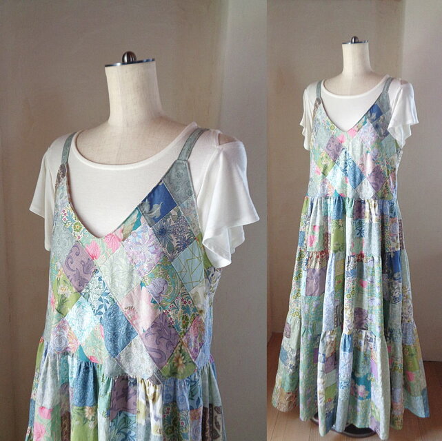 深い赤色系ギャザーマキシとっても素敵。赤系マルチカラーティアードマキシと見比べどっちもも可愛い~可愛い~と連呼、うっとりしています。お作りがとても丁寧で美しく、パーツ生地の並びも最も濃い色(黒地に花柄等)が良い間隔で分散配置されていて素晴らしい。平太ゴムの具合もちょうど良い自然な乗っかり感。年配者なのですがおすすめの作品です。迷われている方はぜひご注文を、と思います。 ありがとうございました!