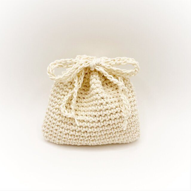 ラメの入ったパステルのコットンで編んだ巾着袋です。