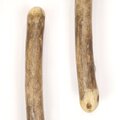 両先端どちらにも木の節があり、一方の前面には2つ並んだ木の節の中央部が落ちて穴となっております。