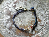 ナガ族クリア蜜柑玉と飴色ホワイトハーツ、すみれ色ビーズインディゴブルービーズ、oldアフガンメタルのブレス(ラピス留め金)