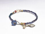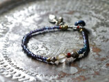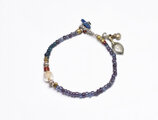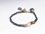 ナガ族クリア蜜柑玉と飴色ホワイトハーツ、すみれ色ビーズインディゴブルービーズ、oldアフガンメタルなどを繋いだブレスです。
