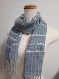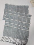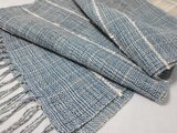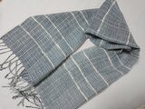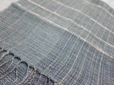 藍染め糸の色あいをみながら経糸をはり、緯糸に麻糸を入れ織っています。アクセントに白のスラブ糸を入れてみました。少しハリのある爽やかなストールに仕上がりました。