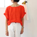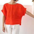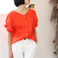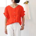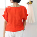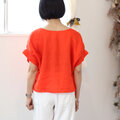 前後で着られる2WAYタックスリーブリネンブラウス【ブラッドオレンジ】