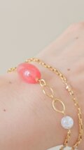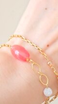 ローズクォーツ(約6mm)のやわらかなピンクと、水晶(約4mm)の澄んだ輝きが、上品なゴールドチェーンと織りなす静謐なバランス。