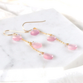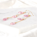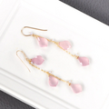 ライラックの花びらを思わせる、ふんわりと優しい色合いのライラックオニキスを、贅沢に6粒あしらったシャンデリアピアス。