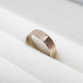リング1周に施されたランダムに凹凸したテクスチャーは光の角度で豊かな表情を見せ、シンプルでありながらも唯一無二の個性を放つ一品。