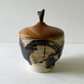 小壺型・銀彩・蓋物なんて可愛らしいフタモノなのでしょう。ひとつひとつ違っていて選ぶのも楽しかったです。 色味もカタチも木と器のコラボも最高なので、ちっちゃいけれどテーブルの主役に大抜てき!(他は何も置かない様にガンバります。) 個包装のあめちゃん10個入りました。 素敵なフタモノに、出会えて良かった! ありがとうございました。