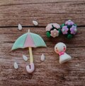丸い花束2個・でんでんむし・傘 雨粒5個・てるてるぼうず・浮き葉