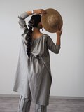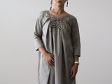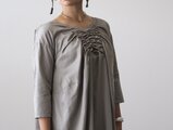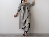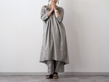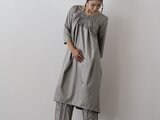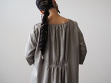 胸元にギャザーを寄せて縫い留め、やわらかなフォルムに仕上げています。