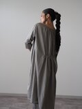 サラッと光沢のあるコットンサテンで作った、シャーリングワンピース。