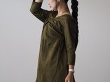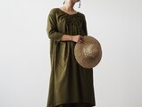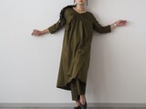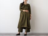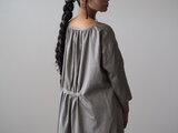 胸元にギャザーを寄せて縫い留め、やわらかなフォルムに仕上げています。
