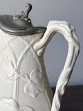 イギリス 塩釉炻器 ピシェ ピッチャー 蓋つき レリーフ アイビー アンティーク 0502184