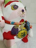 陶器や張り子や木目込みのものは見かけますが、布地で作ってみたら素敵かな…と試作をはじめやっと"かたち"になり、今回 3代目です。