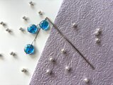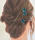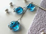 水色とゴールドラメのとんぼ玉を3連にしてかんざしを制作しました。