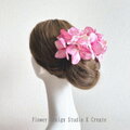 斑入りのピンクの紫陽花の髪飾り( 2点セット) ピンク あじさい アジサイ Uピン 花飾り 頭飾り フラメンコ ダンス