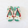 2 Lサイズ 鼻緒も緩めに仕上げて頂きました(*^^*) 自分のサイズが合い 履き心地の良さはもちろんですが 気品がある深い紫色 そこに咲く椿の花が見事で華やかです 側面にまで咲いてます(*^^*) 鼻緒の色柄もマッチしていて最高の作品でした