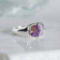 アメシストの鮮やかな紫色やクォーツの白色とクリアな色味など個性的な色合いが楽しめるバイカラーアメシストのリングです。