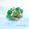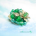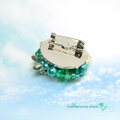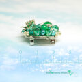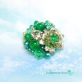 透明感のあるライトエメラルドのスワロフスキーと、クリアなラインストーンが花びらを彩り、光を受けるたびに上品にきらめきます。