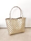 ★ 光沢のあるゴールドをシンプルに1色で編み込んだ、プラカゴトートになります。