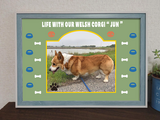 ◎ワンちゃんを手描き(95%)+画像調整ソフト(5%)にて、オリジナルのイラスト化してデザインの中に入れ、ポスターにいたします。