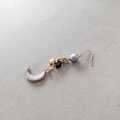 シェル素材の白い三日月と小さな星モチーフのイヤーアクセサリー。