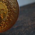 氷のような表情◆琥珀色で素敵。アンバー硝子小鉢 曇りガラス 丁寧な暮らし。古道具 昭和後期