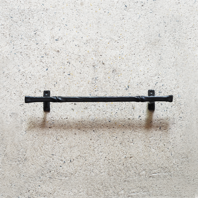 【ロートアイアンのドアハンドル】角13㎜ 長さ35㎝ 無垢角鉄のねじり加工・鍛造|アイアンバー・手すり・傘かけ