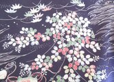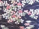 ・黒地に萩の葉や紅葉などの柄 絽着物 シルク100%