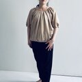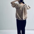 デザインは、ラグランスリーブをベースにして、衿刳に細かくタックが入り膨らみのあるシルエットを出しています。衿刳は狭すぎず、広すぎないラインを模索しました。