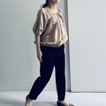 合わせるボトムやアクセサリーなどで、フォーマルにもカジュアルにも対応できるブラウスです。