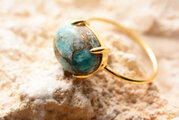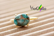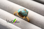 『コッパーアマゾナイト(10ミリ✕8ミリ)リング(横向き)Silver925・18KGP 』