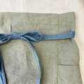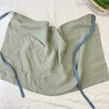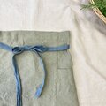 肌馴染みの良いふっくらととろむ厚みのカフェエプロン 腰紐バイカラー ベルギーリネン25番手 グラスベージュ×腰紐サックス
