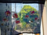 涼風を感じたくて、古い麻衣に、絹の絞りを花にたとえて。