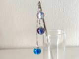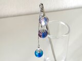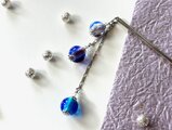 青と紫のとんぼ玉を3連にしてかんざしを制作しました。