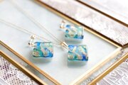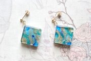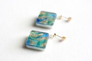 レジンアート スクエアピアス〈螺鈿の海〉