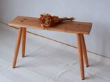 耳付とは丸太の自然の丸みを残して加工した材のことです。長方形の座面ですが横からの表情や木目の面白さが目を引きます。とてもスリムなサイズですので場所をとりません。ベンチ、飾り棚、テーブルなど使い方はたくさんありそうです。