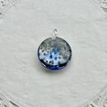 紫陽花を彫り込みプラチナ箔で彩り裏に薄く紫陽花をイメージした青いドットのある凝った創りのペンダントです。