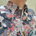 変り織りの綿生地に武士と舞妓が描かれた粋なシャツ