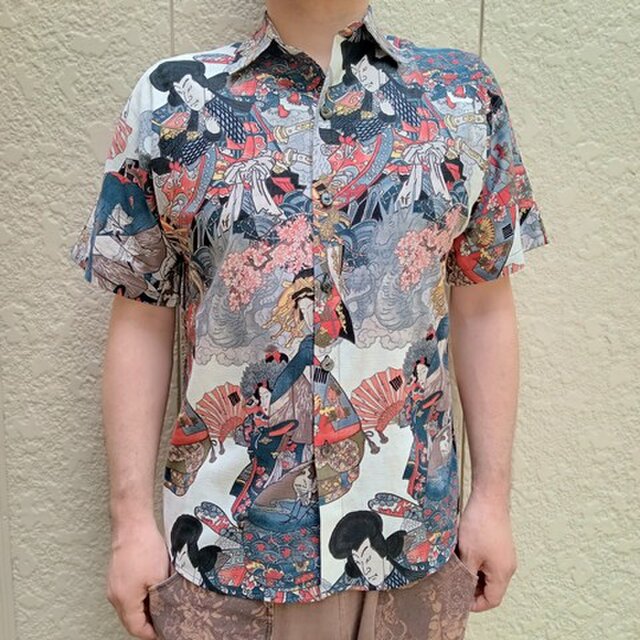 新作手作り半袖和柄シャツ(武士と舞妓)