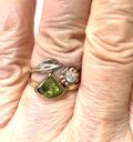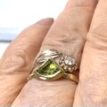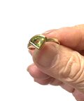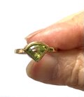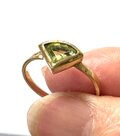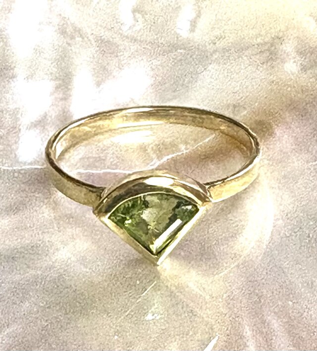 シンプルなトライアングルカットのペリドットをあしらったリング。シンプルで小ぶりで可愛いので、他の指輪と重ね付けするのにぴったりです。