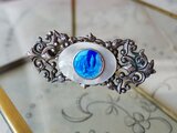 アンティーク ルルドの聖母 Blueエナメル/マザーオブパール filigreeブローチ