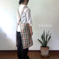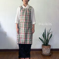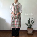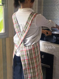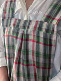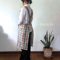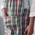 リネン100%薄手で軽いクロスバックエプロン・グリーンチェック