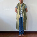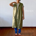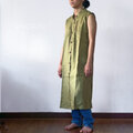 リネン 大人のワシャツンピース・オリーブグリーンのノースリーブロングブラウス
